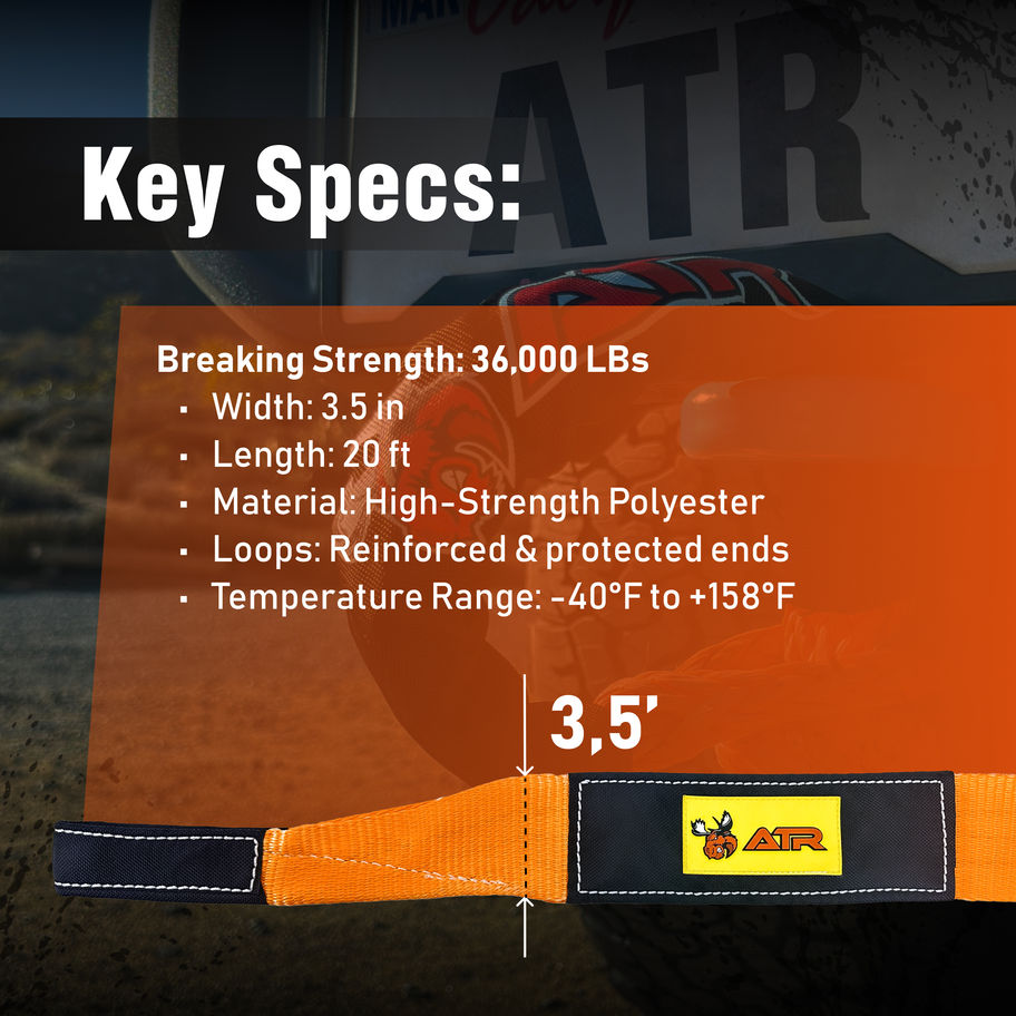ATR Recovery Tow Strap 3.5" x 20ft – 36,000 lbs Break Strength